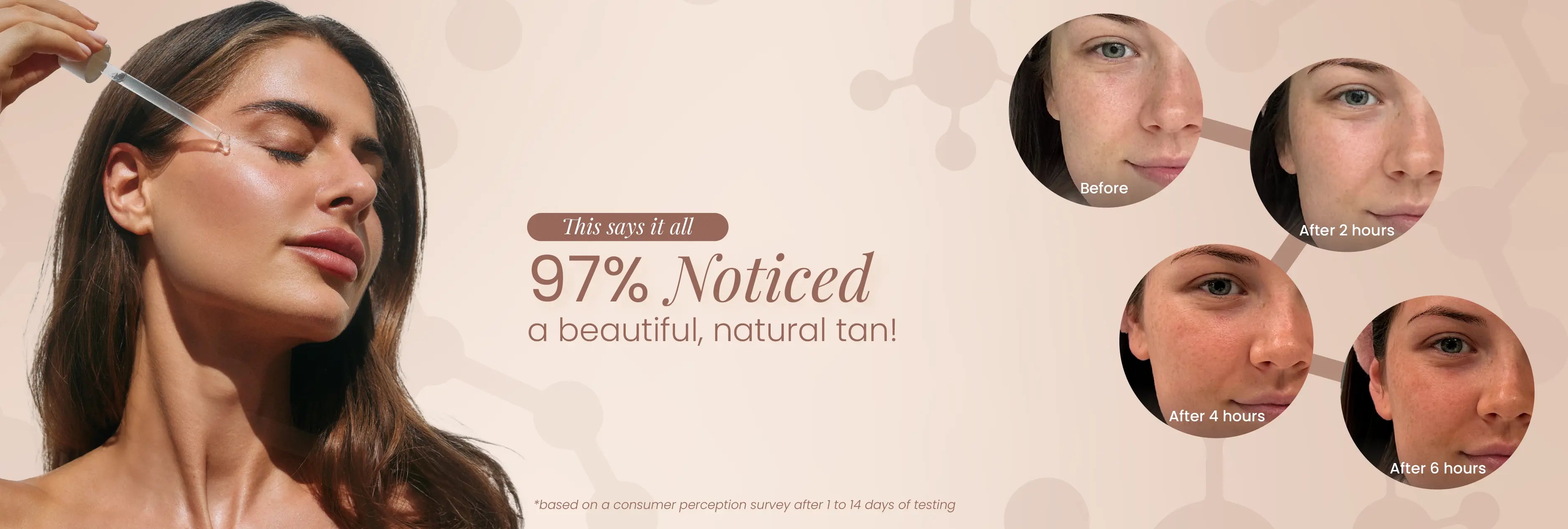 For a continuous glow, you can apply the hyaluronic acid tanning drops every few days. Depending on your desired tan, you may need to reapply as the tan fades.